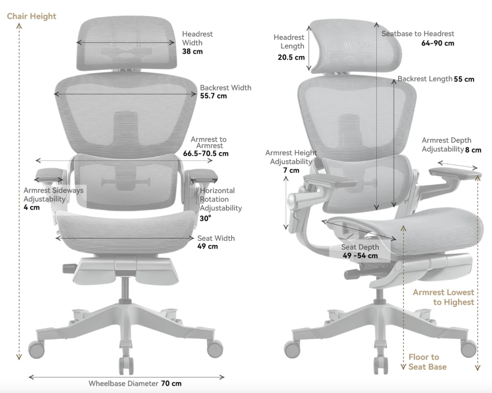 Explore the detailed specifications and technical features of our ergonomic office chairs. Learn about adjustment capabilities, load capacity, materials, and more to find the perfect fit for your comfort and workspace needs.