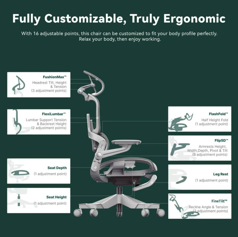 Experience ultimate comfort and flexibility with our 5D armrest system. Adjust height, width, depth, angle, and pivot to find your perfect position. The 5D armrest adapts to your natural arm movements, reducing shoulder and wrist strain while providing consistent support throughout your workday.